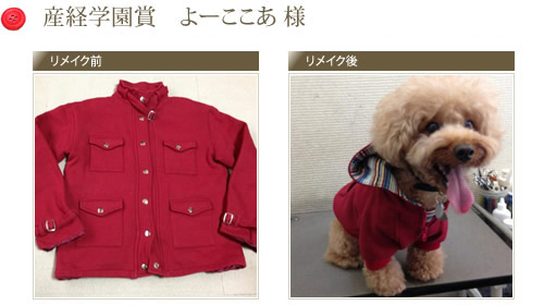 産経学園賞は、当店代表の講座も開いておりますカルチャーセンター産経学園様が選んだリメイク犬服です。