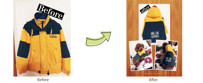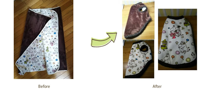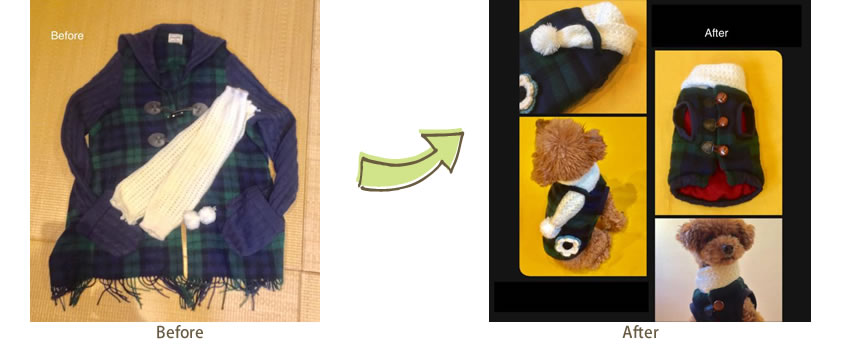 今回のリメイクコンテストでは、最多投票を集めた「mellmama」のリメイク犬服が優勝です。