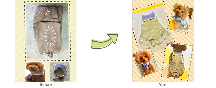 実際にワンコに着せて、男の子と女の子が並んだらさぞ、可愛いでしょうね。
