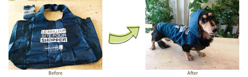 いただき物のエコバックがかっこよかったので、 レインコートにしてみました。