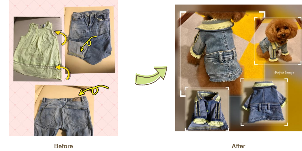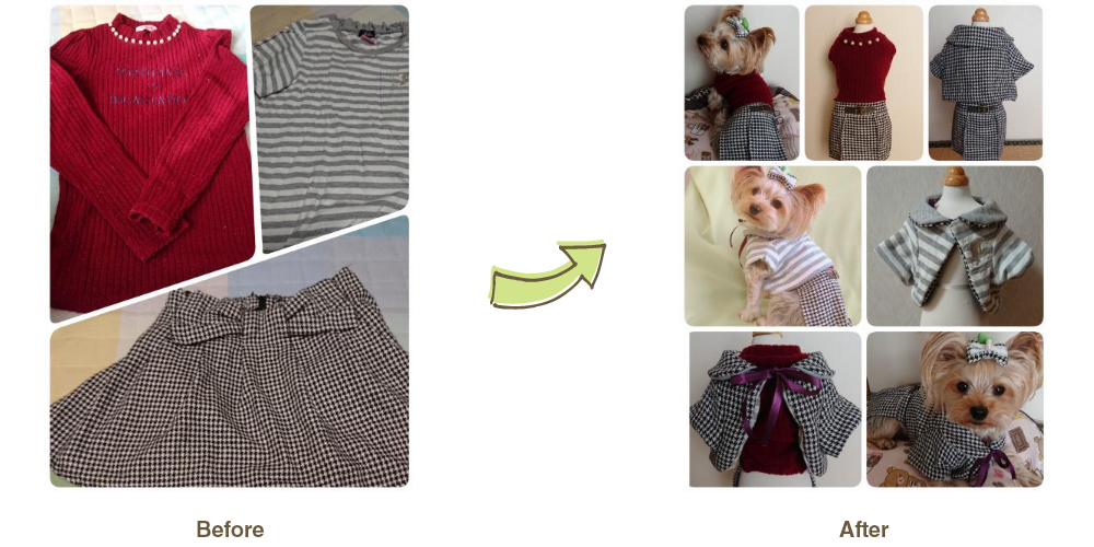 3点の服から着まわしのできるわんこ服を作る、という発想に目からウロコです!