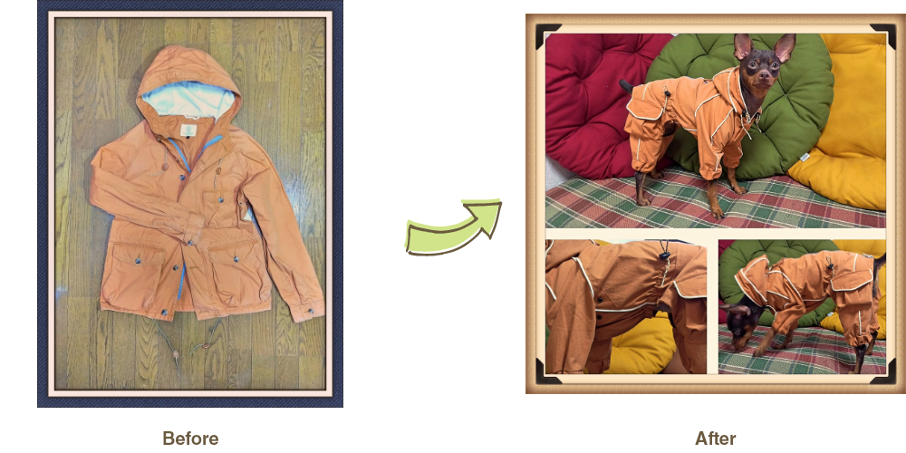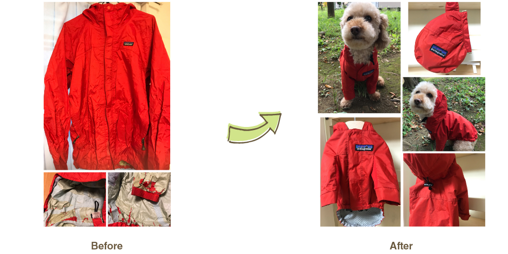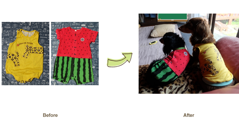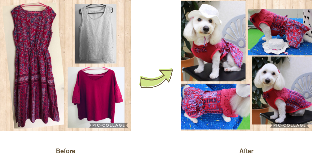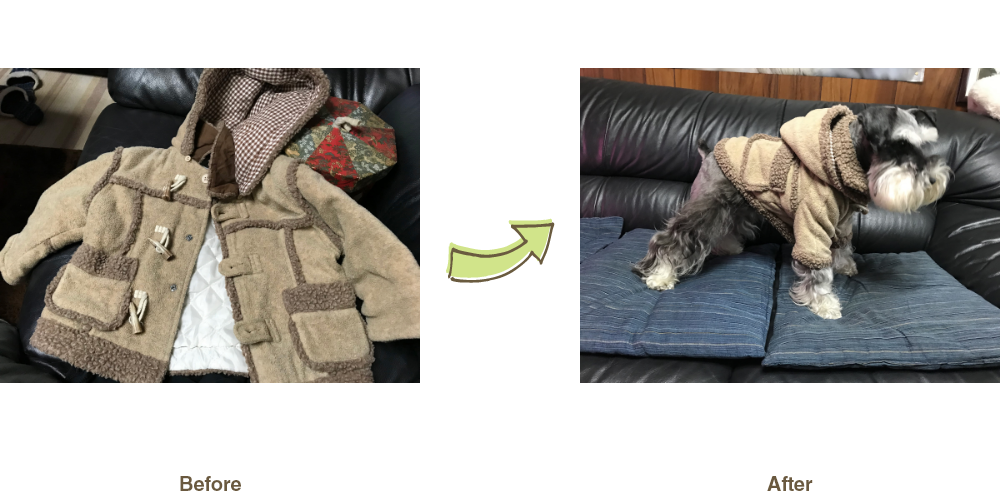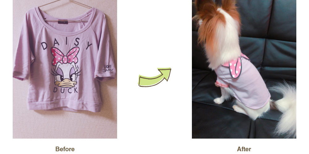 贈ったお洋服がまた戻ってきて、愛犬の服になる。