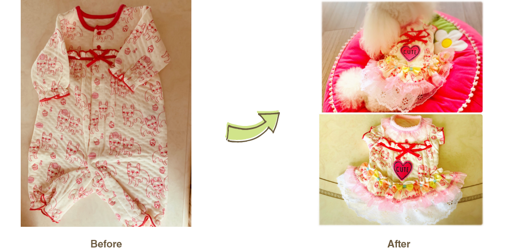 愛犬に家にあるものを使って,リボンをポイントに可愛くリメイクした服で,賞を頂けてとても嬉しいです。