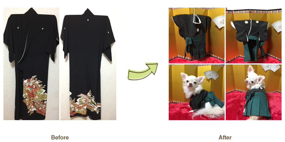 昨年他界した祖母の遺した荷物を、整理をしている際に祖母や母の着ていた着物が、たくさん出てきました。 祖母が拘って作ったのでどれも家紋が入っています。でも、誰も着ないし、かといって捨てるに忍びないので、どうしようか考えていたところ、黒紋付を見てあるものを思い出しました!それが、今回リメイクした「黒紋付袴」です。 私は祖母の影響で3歳から宝塚歌劇を拝見しているのですが、宝塚歌劇の初舞台生は必ず、この衣装を着て口上を述べます。そこで、ピン!と来て宝塚歌劇の初舞台生風衣装をリメイクで作ろうと決めました。紋が入った部分だけを使用した贅沢なリメイクになりましたが、まるで本家宝塚歌劇団の生徒さんが着る本物の黒紋付袴に仕上がって大変満足しています。来年の桜の時期は、これを着せて花の道を散歩したいと思っています。