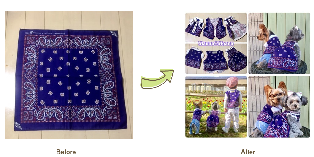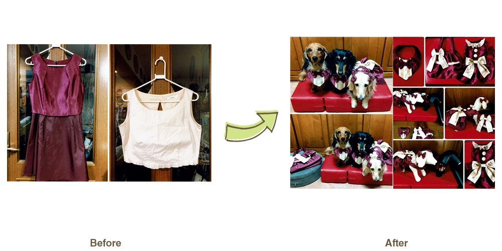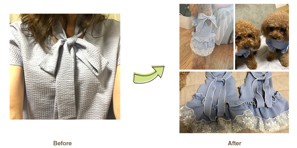 思い出のあるお洋服が形を変えて、またわんちゃんたちの生活に笑顔がプラスされるのが何よりの幸せであり喜びですねぇー。
