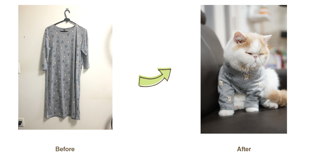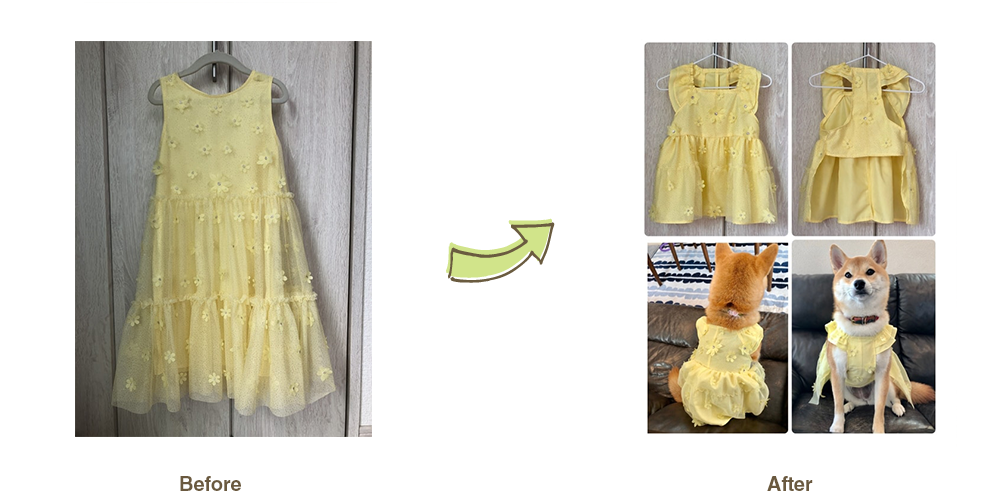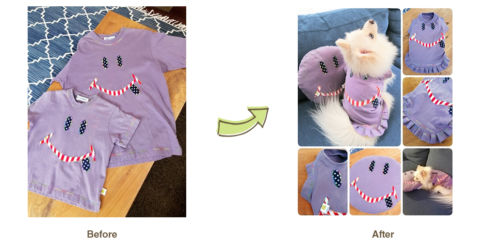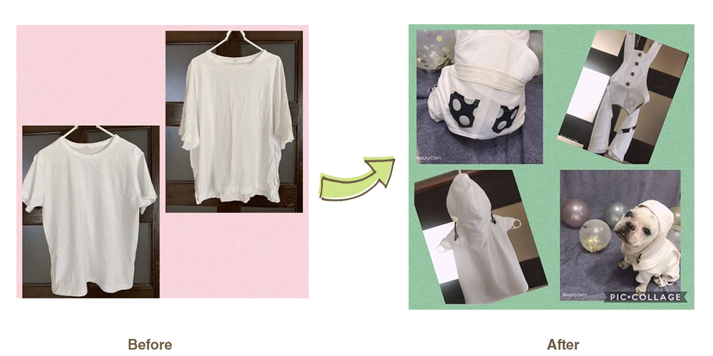 しまいこんでいた大切なTシャツを愛犬の服にリメイクしてまた活躍させることが出来ただけでも嬉しい事でした。