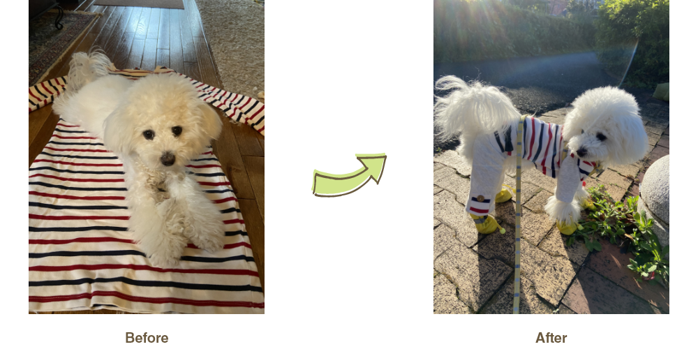 元のデザインとはガラッと変わった可愛さも愛犬の雰囲気に合っていて大成功だと思います!
