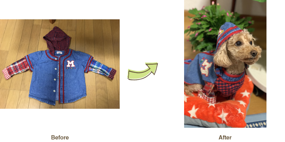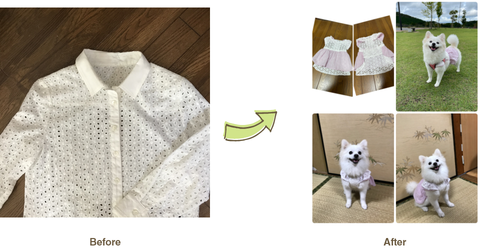 優秀賞は、パルぱるさんからの投票で決定したリメイク犬服です。