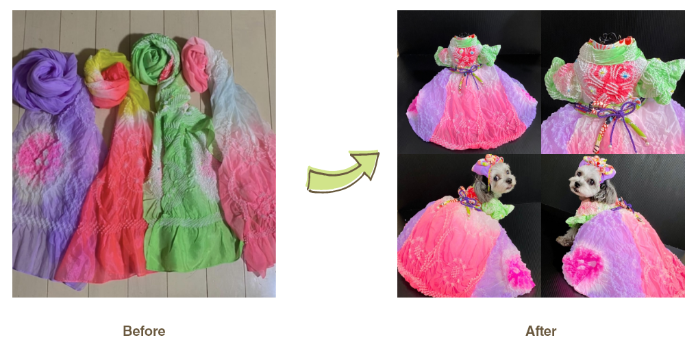また、思い出の詰まった服からこれまた大切な思い出になりそうな結婚式用の服だなんて……とっても素敵です!