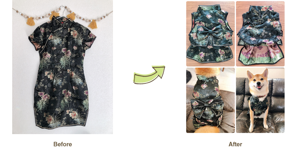 家で眠っていたチャイナドレスを我が子のハロウィンパーティーの為にリメイクしました。 布地がしっかりして綺麗だったので余すとこなく、ペプラムやリボンに使用しました!リボンにはチュールを挟んでハリを持たせ、着た時にペプラムがリボンのタレ部分にみえる様に。セクシーより可愛いを目指しました!