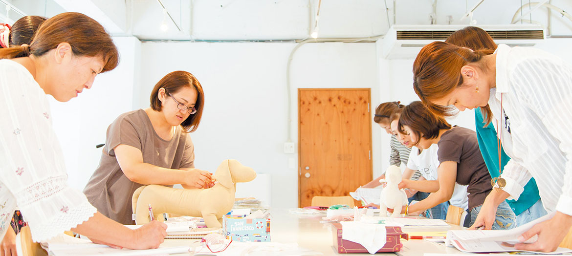 講師がマンツーマンで工程を説明するスタイルだけでなく、生徒さん同士で発見したことをシェアしたり、自分のアイデアを形にしたり、色々な側面から発見、学んだ事を講座内で共有することで、生徒さん同士はもちろん、先生自身も一緒に学んでいける講座をすることができます。